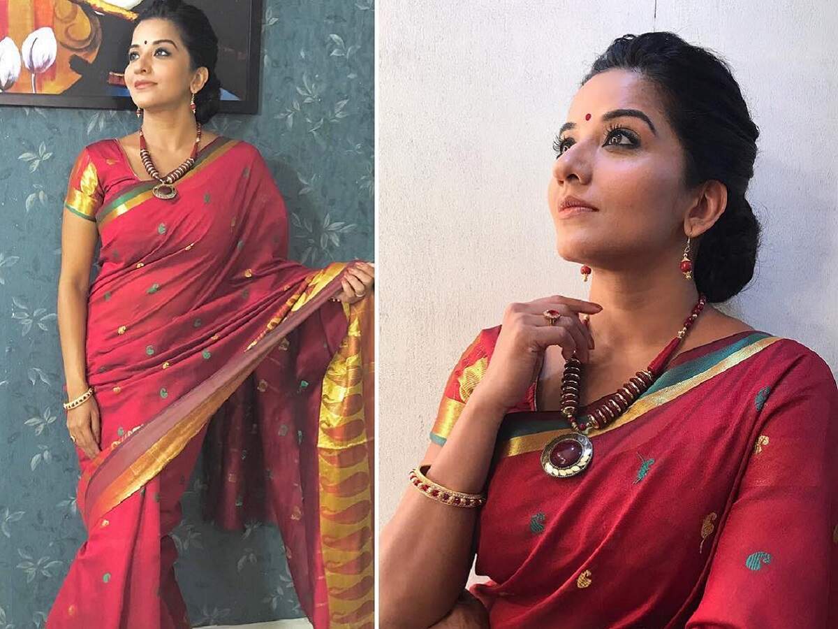 Prajakta enhanced her bold look with bold red lips and golden statement earrings. Traditional look or any western look, this actress is always looking very beautiful. Athulya ravi too didn't make an exception. Beautified with jari & thread em. Vidya balan always looks dashing in sarees, and this look is no exception.